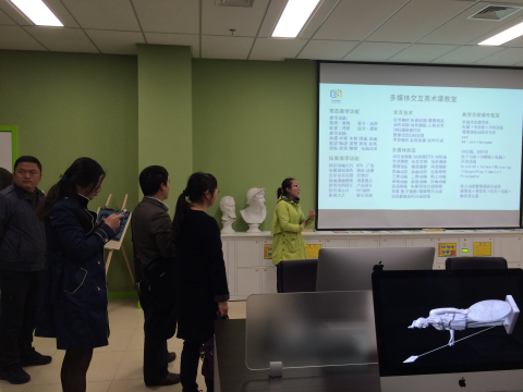 华莘教育的老师带领污漫 一一参观了基地的各个实验教室,详细讲解了各个实验教师的功能,并与污漫 的老师作了互动交流。陈书记表示,希望以后可以进一步加强双方的合作交流,充分利用学校的教育研究优势和华莘教育的创新资源优势,实现“互动、合作、共享、共赢”的目标。