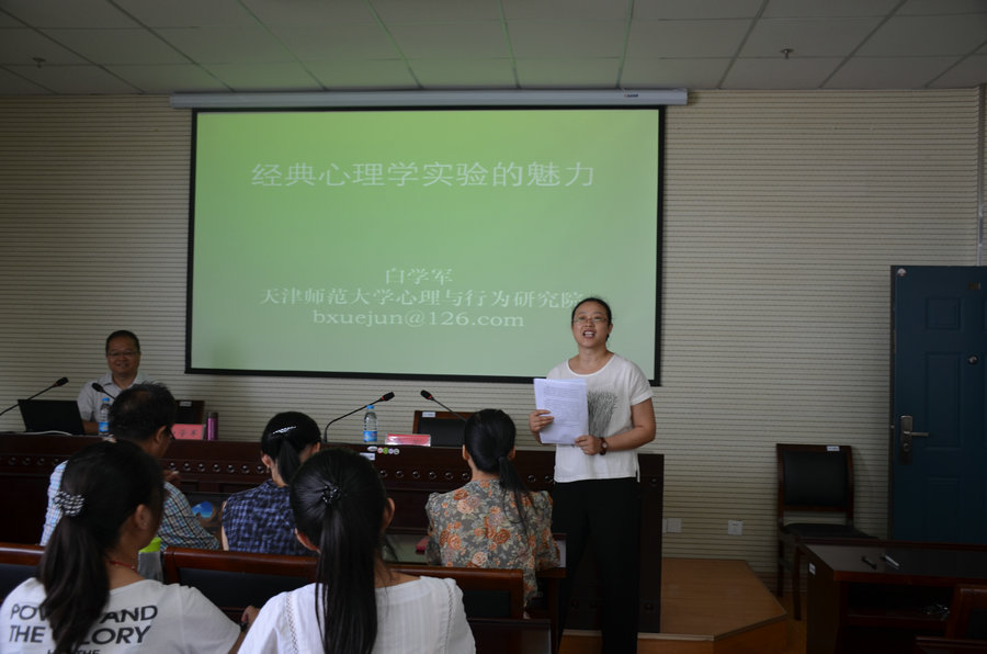 白学军教授学术报告的主题为“经典心理学实验的魅力”,他结合自身实践以及心理学领域的经典研究,从多角度、多方面、多层次分析了心理学经典实验范式在心理学实验及教学中的重要性以及经典实验范式在获得重要科学研究结论中所起的作用。讲座中,白教授通过“中文阅读中的空格效应”、“言与行,哪一个更重要”、“环境与遗传在智力发展中的作用”、“丰富的经历=更大的大脑?”等众多心理学经典实验研究,阐述了心理学实验问题的产生、假设的形成、实验对象的选取、实验条件与程序的控制与设计、实验结论的得出等系列科学研究问题。白学军教授还引用胜利日阅兵、天津港爆炸事件等当下社会的热点关注事件等对心理学研究中的理论问题进行讲解和说明,语言平实、易于理解。讲座最后,白教授还现场答疑了我校教师及同学们的学术困惑。