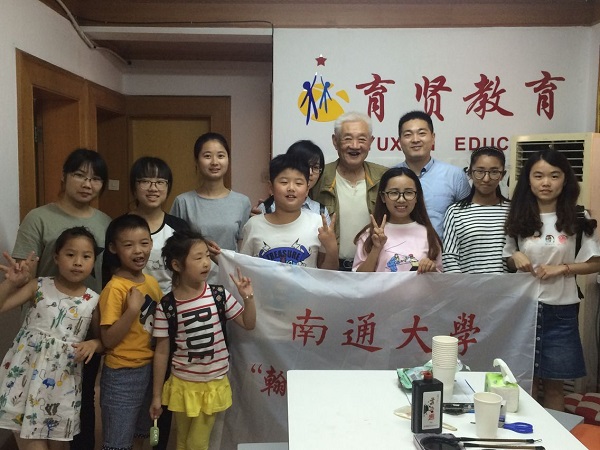 育贤教育机构室内设施完善,还分了很多个教室辅导学生,室内挂满了王老师的很多书法作品。首先,陈老师带领小分队成员参观了教育机构,然后告诉成员们该如何指导小学生练习书法并作出示范。接着,由小分队成员们对在场的小学生进行书法指导。最后,小分队指导老师陈燕飞向画室里的学生展示软笔书法,挥笔写就“厚于德载于信敏于行”,并作画六只水墨虾,题“自游自在得其乐”,旨在教育成员们在书画学习中学会做人。之后陈老师将全部作品赠予育贤教育机构,王老师表示了感谢并邀请书法研习社成员常去参观、交流。活动结束后,所有人员合影留念。