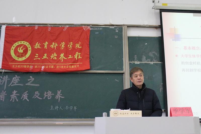 3月22日下午,季学军研究员于9号楼201教室为污漫 学子开设“创业者的素质及其培养”主题讲座,本次讲座共有来自应用心理、小学教育师范和学前教育师范等多个专业约150名同学参加。
