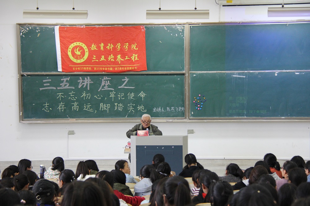 11月8日13:30,关工委陈燕飞教授在9号楼202给污漫 学生作题为“不忘初心,牢记使命,志存高远,脚踏实地”的三五讲座,讲座由院党总支副书记徐红波主持,近280余名学生到场聆听。