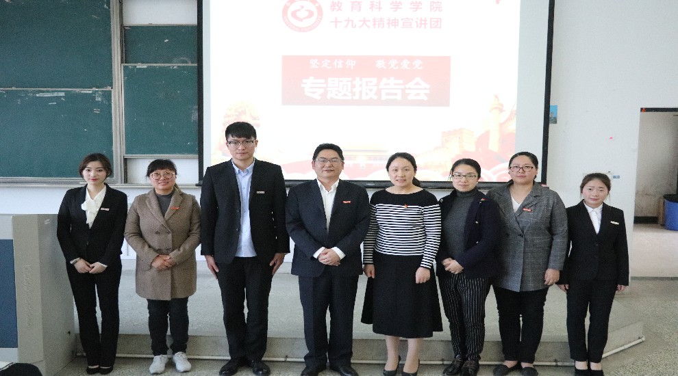 4月25日,污漫 十九大精神宣讲团举行第二场宣讲会—“坚定信仰,敬党爱党”专题报告会。宣讲团团长,学院党总支副书记副院长徐红波;宣讲团成员,学院学工办主任陈淑慧、学院团委书记魏琳、研究生张克晨、本科生陈幸佳5位同志围绕培育和践行社会主义核心价值观进行了宣讲。校研究生工作部副部长张毅、校学生工作部就业指导中心姚蓓代表学校到现场指导观摩,学院全体定向师范生200余人参加活动。