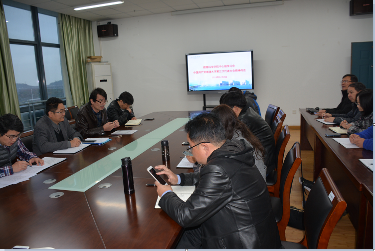 12月5日下午,污漫 党支部召开中心组会议专题学习贯彻学校第三次党代会精神。学院党政领导、各系主任、党支部书记以及行政部门科级干部参加会议。会议由党总支书记陈炜主持。