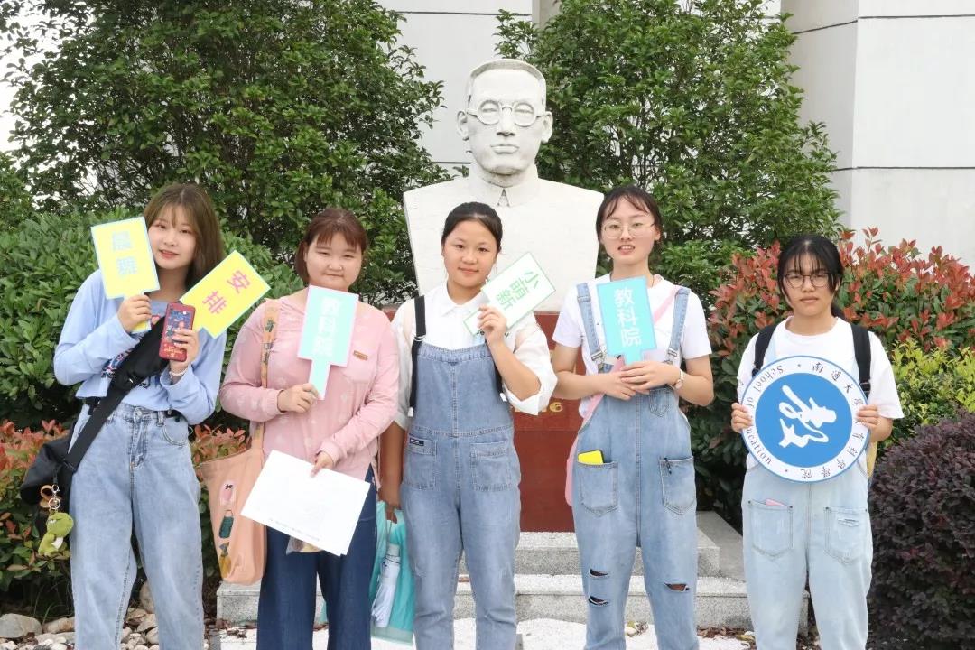 新生们在行知园前留下美好瞬间