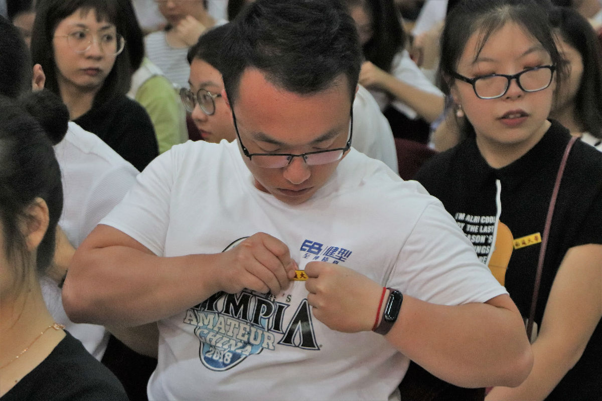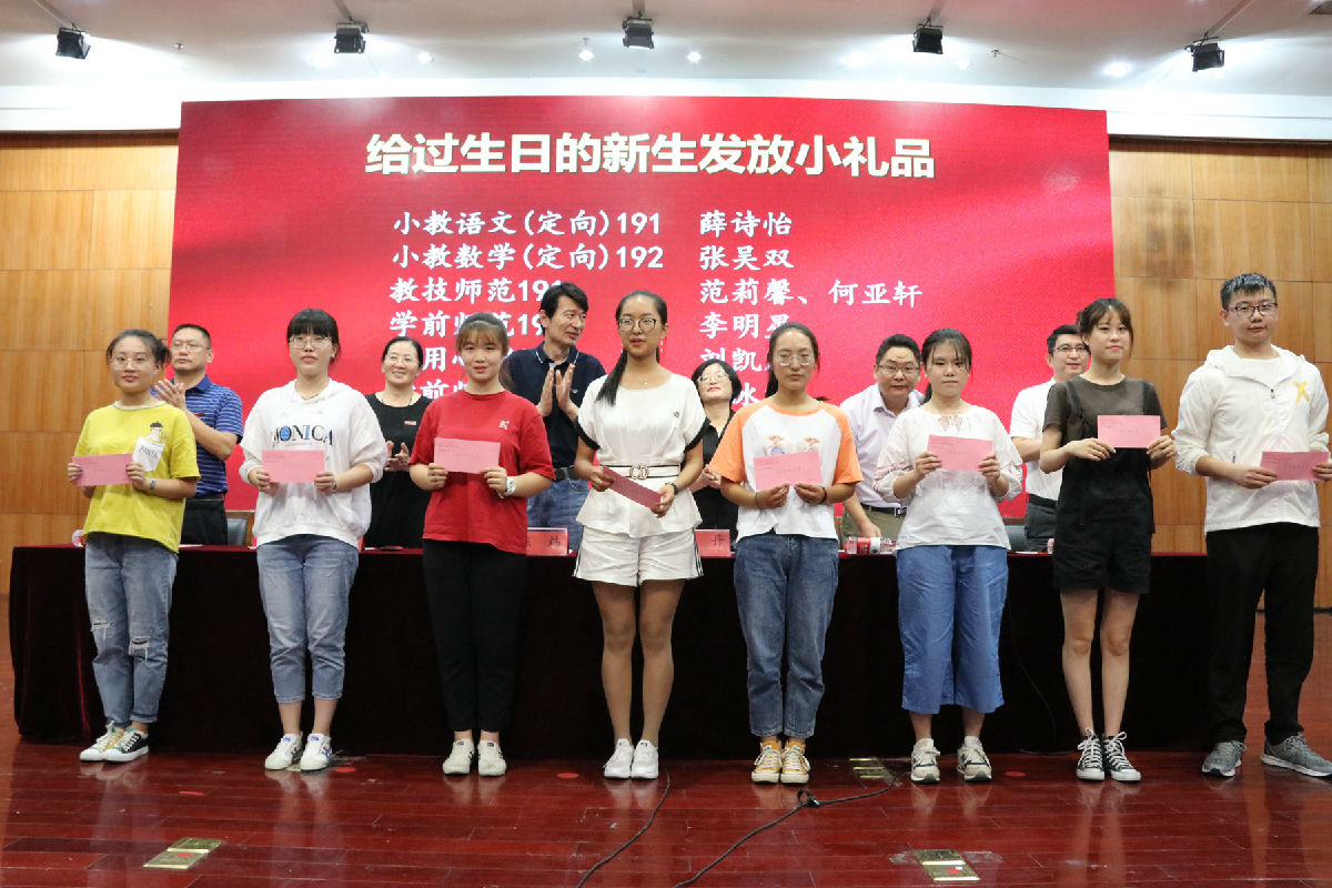 典礼开始前,全体师生观看了学院为2019级新同学精心制作的暖场视频。新生大数据分析、学院相关介绍、新生及新生家长采访、学院领导和老师的温馨祝福,营造了良好的典礼氛围。入学典礼上,学院还特意为开学一周内过生日的十名同学送上了精心准备的生日礼物,让新生们感受到来自教科院大家庭的温暖。典礼上,全体新同学为自己佩戴上污漫