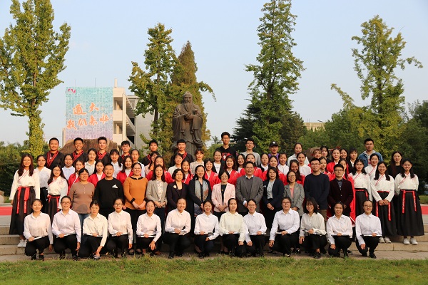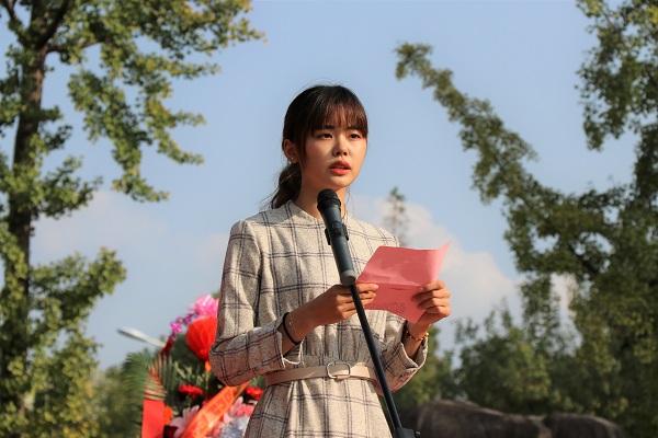 朱丹代表学院在祭孔仪式上致辞。她强调:孔子被历朝历代奉为“文圣”,他所创立的儒家文化,为中国的文化教育立下了不朽功勋。作为一个以教师教育为特色,以培养师范生为主体的学院,理应继承学校师范教育的传统,扛起“传承传统文化薪火,重塑高尚师德灵魂”的大旗。她希望2019级的师范生们谨记先圣遗训,一要学习他的仁爱情怀,用高尚的师德熏陶学生,用渊博的知识丰富学生,用高雅的言行影响学生;二要学习他的使命意识和进取精神,要自觉肩负起时代赋予我们的使命,砥砺品格,勤思善学,提高教书育人的本领,自觉投入到祖国的教育事业中去;三要学习他的学习精神和内省精神,以孔子作为人格完善的榜样,树立终身学习的意识,将国学精要与时代精神、育人事业紧密结合,提升自身道德修养,早日成长为国家的栋梁之才。