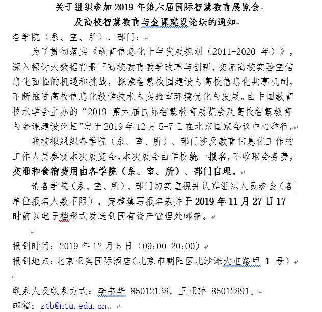 【转发】关于组织参加2019年第六届国际智慧教育展览会及高校智慧教育与金课建设论坛的通知