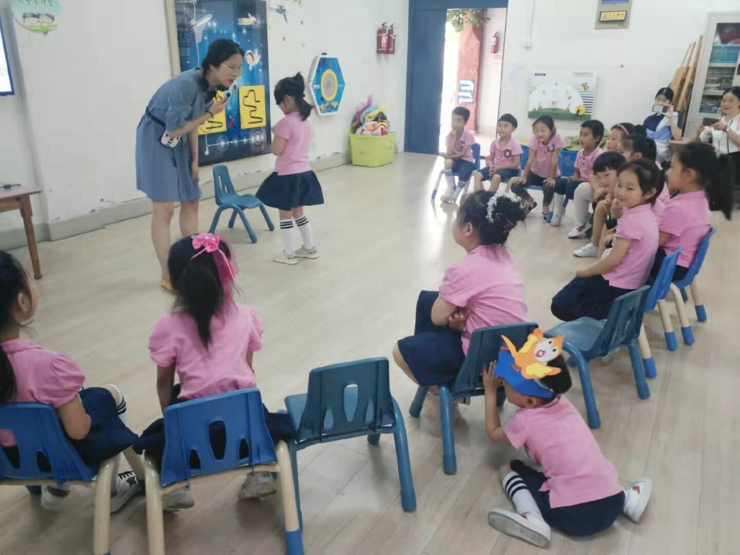 6月24日上午,学前教育系韩恬恬老师带领学前161班全体学生走进南通市五山小学幼儿园,将基于课程游戏化设计理念的音乐原创课例入园实践,与一线教师共同研讨幼儿园音乐教学新思路。学前教育系学生新颖的教学设计与良好的教师素养获得了一线教师的高度好评。