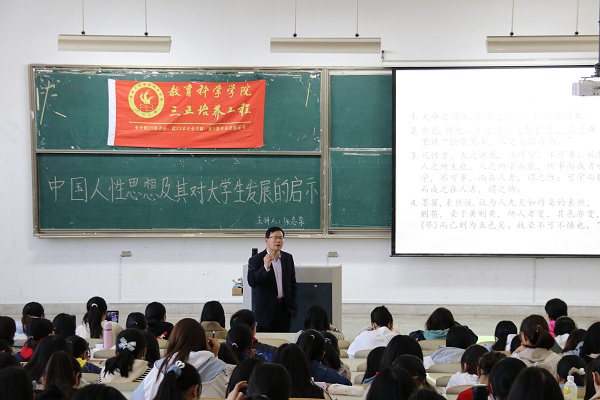 11月4日下午,污漫 于9号楼302教室举办以“中国人性思想及其对大学生发展的启示”为主题的三五讲座。此次讲座由张志泉老师主讲,教科院280余名学生到场聆听。
