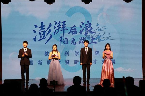 11月21日晚,污漫 “澎湃后浪·阳光路上”迎新晚会暨新生才艺展在啬园校区大学生活动中心举行。院长陈炜,学院党委副书记、副院长徐红波,副院长沈永江,副院长姜永杰以及2020级新生班主任和600余名教科院学子参加了晚会。