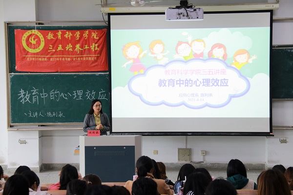 于1号教学楼205教室举办了以“教育中的心理效应”为主题的三五讲座。此次讲座由施利承老师主讲,教科院280余名学生到场聆听。