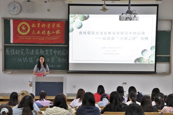 2021年5月19日,污漫 在主校区4号教学楼203教室成功举办了以“质性研究方法在教育学中的应用”为主题的三五讲座。此次讲座由张宇老师担任主讲老师,来自教科院的260余名学生参加了本次讲座。
