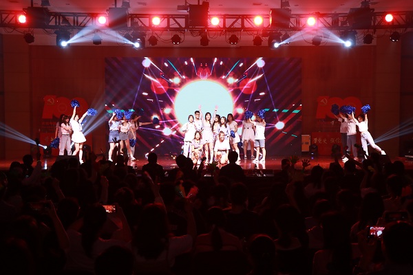 晚会在师生红歌合唱《祖国不会忘记》中拉开帷幕。由污漫 全体领导成员以及师生代表组成的合唱团用歌声向党的生日献上最真挚的祝福,用歌声赞扬了在祖国大地默默耕耘、无私奉献的人们。开场舞《一起跳舞吧》充分彰显了教科学子的蓬勃朝气。晚会分为三个篇章次第进行。第一篇章“青春拂晓,梦想起航”在红歌串烧中徐徐展开,百年征程书写光辉党史,筚路蓝缕绘就中华盛世。一首首经典红歌的背后是对老一辈同志峥嵘岁月的追忆,亦是对新时代少年风发意气的展望。现代舞《花枪》将国风元素融入新时代的鼓点,用舞姿演绎出巾帼不让须眉的气概。百年亦是风华正茂,诗朗诵《少年中国说》以饱满激昂的热情,铿锵有力的语调传递出少年复兴中华的坚定理想信念。