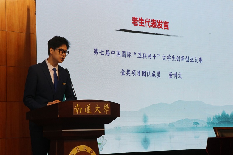 在大学期间如何能够成为最好的自己?典礼现场,学院邀请在第七届中国国际“互联网+”大学生创新创业大赛获得金奖的“派斯盾‘鞘翅甲’仿生纳米自洁涂层”研究团队中污漫 的两名成员元淑芬、董博文登台亮相。元淑芬同学学习出众,堪称“全能学霸”;董博文同学能力出众,堪称“演讲达人”,两位同学为新生群体带来榜样的力量。董博文作为老生代表分享了他参加“互联网+”大学生创新创业大赛的艰辛的备赛经历和人生感悟,他认为,努力是最好的答案,拼搏的汗水总是在熠熠生辉,人生的路途是漫长的试炼与成长。