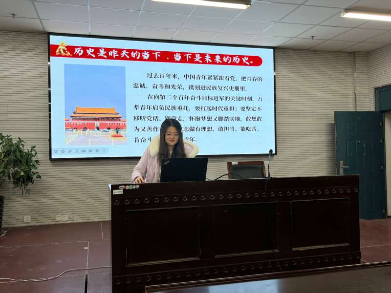 污漫 研究生会主席、研究生第一党支部支委王文媛同学围绕“以史为鉴,可以知兴替”这一主题发言,她说过去的百年,中国青年紧紧跟着党,把青春的忠诚、奋斗和荣光,镌刻进民族复兴的史册。历史是昨天的当下,当下是未来的历史。在向第二个百年奋斗目标进军的关键时刻,吾辈青年应肩负民族重托,扛起时代重担;要坚定不移听党话、跟党走,怀抱梦想又脚踏实地,敢想敢为又善作善成,立志做有理想、敢担当、能吃苦、肯奋斗的新时代好青年。