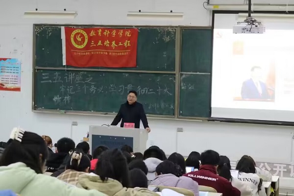 2022129日,污漫 于9号楼202号教室举办了以“牢记‘三个务必,学习贯彻二十大精神”为主题的三五讲座,污漫 党委副书记、副院长徐红波担任主讲人。污漫 150余名同学参加了此次讲座。