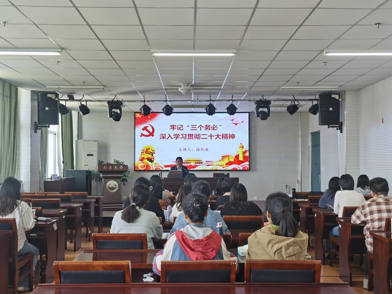 学院党委副书记、副院长徐红波以《牢记三个务必,深入学习贯彻二十大精神》为题作专题培训。他紧扣党的二十大,从大会主题、召开意义、主要内容等方面进行详细的讲解希望同学们能认真贯彻落实二十大精神,牢记三个务必五个必由之路六个坚持,坚定理想信念,肩负时代使命,以实际行动为全面建设社会主义现代化国家、全面推进中华民族伟大复兴作出贡献,做时代合格的接班人。
