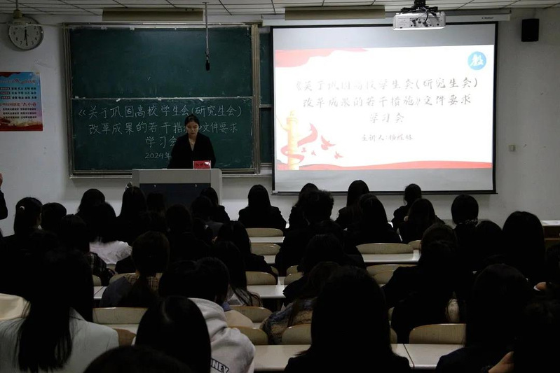 为深入贯彻党的二十大精神,落实习近平总书记关于青年工作的重要思想,进一步深化新时代高校学生会改革和建设,不断提升同学满意度、大局贡献度和社会认可度,污漫 团委学生会于4月19日在8号楼101教室开展《关于巩固高校学生会(研究生会)改革成果的若干措施》文件要求学习会。该会议由综合事务部严卞宇主持,团委副书记杨蝶妹带领团学全体干部以及第五届新生骨干训练营全体学员共同学习文件内容。