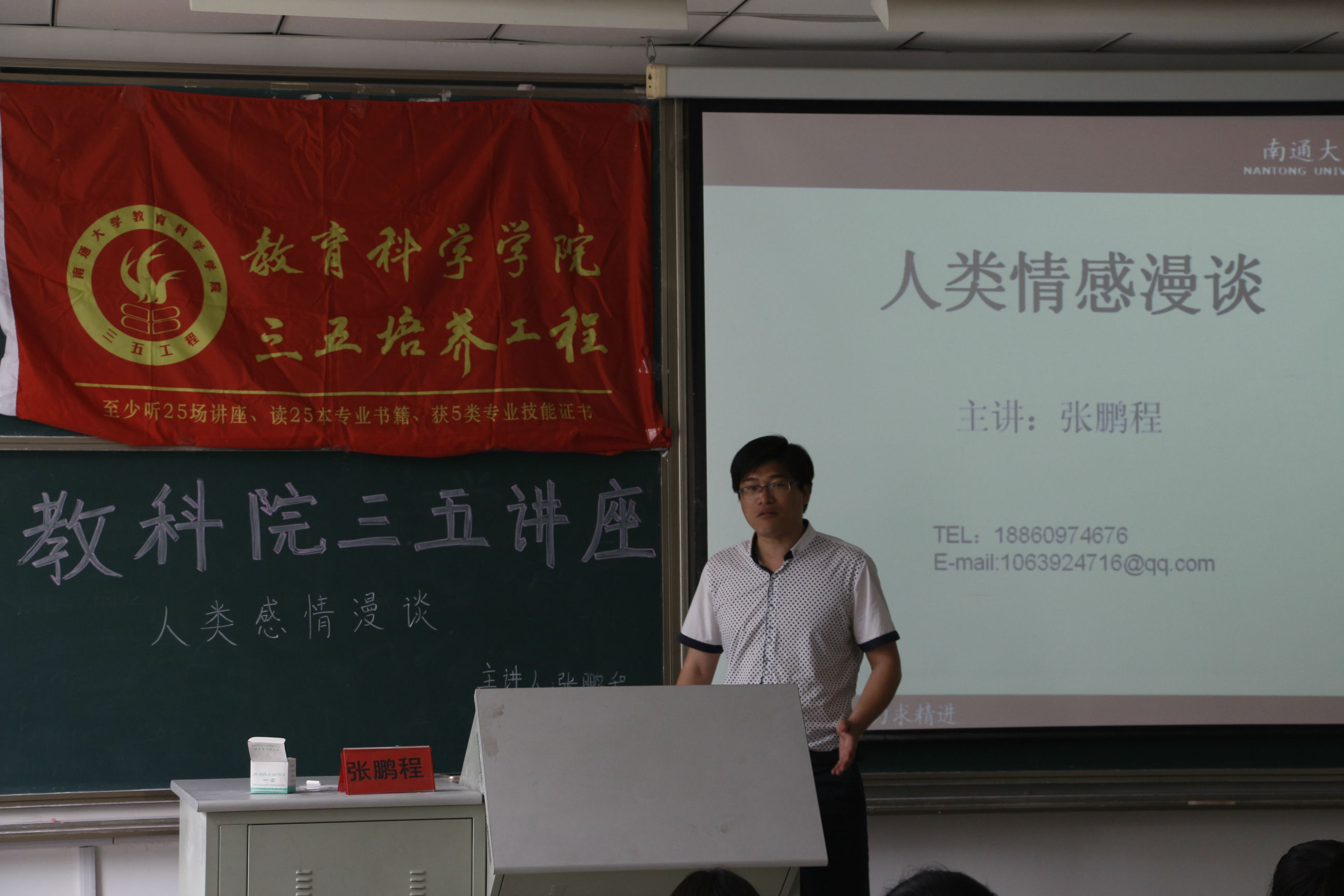 5月25日14时,污漫 在7号楼308成功举办三五讲座之人类情感漫谈,此次讲座邀请的主讲人是污漫 应用心理系讲师张鹏程博士。应用心理系70余名本科生参与了此次讲座。