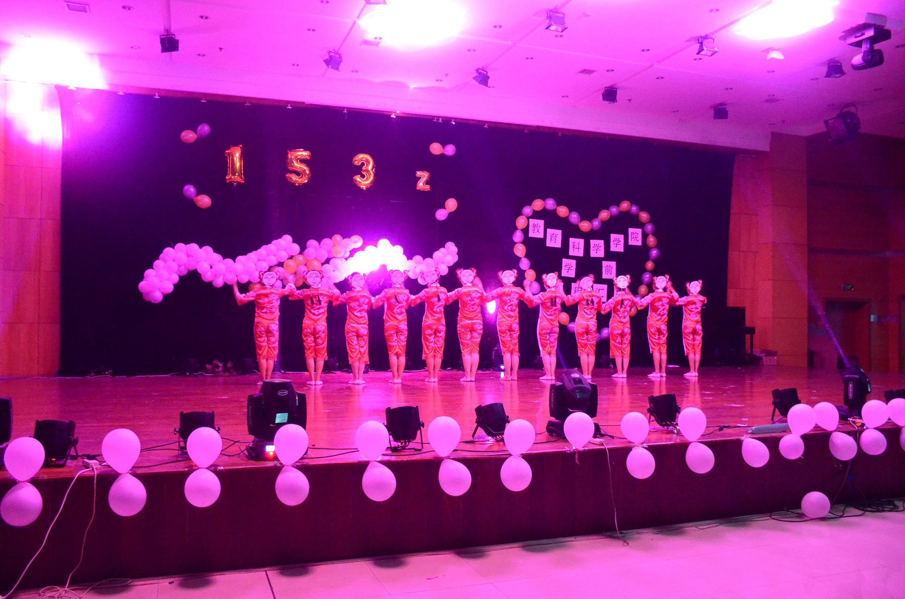2016年6月6日晚6点06分,污漫 首届5+2专转本班级,学前师范153Z班专场课程汇报在大学生活动中心圆满落下帷幕。教科院副院长许铁梅、书记陈炜、主任吉兆麟、班主任王丽莉等领导老师和二百余名观众观看了本次演出。