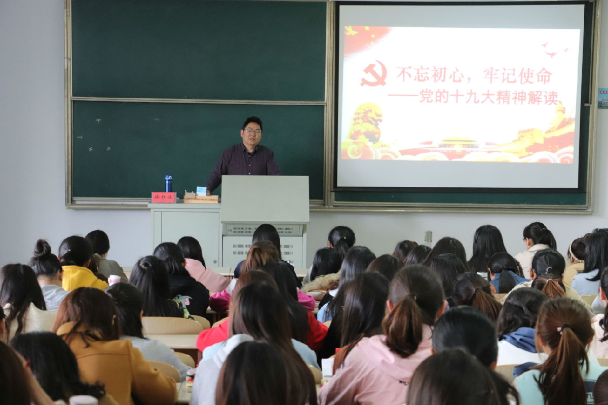 党总支副书记、副院长徐红波为为第二十二期入党积极分子培训班学员作“不忘初心,牢记使命——党的十九大精神解读”主题讲座。