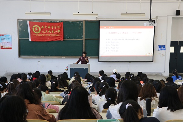 11月18日13:30,污漫 于九号楼302教室举办以“为成为优秀幼师尽早规划尽力实施”为主题的三五讲座,此次讲座由尤素敏老师主讲,教科院280余名学生聆听了本场讲座。