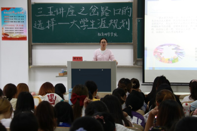 2021年6月3日,污漫 在主校区8号教学楼203教室成功举办了以“岔路口的选择——大学生涯规划”为主题的三五讲座。此次讲座由郑月红老师主讲,小学教育师范201班、教育技术专业191、192班、小学教育语文(定向)191班的学生参加了本次讲座。